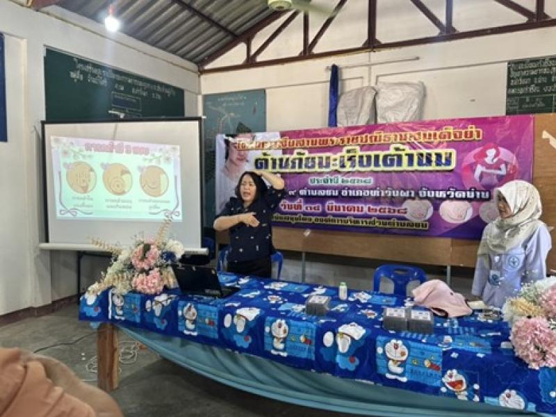 รายละเอียด : วันศุกร์ที่ 14 มีนาคม 2568 บ้านน้ำไคร้ หมู่ที่ 9 ตำบลยม อำเภอท่าวังผา จังหวัดน่าน ดำเนินโครงการสืบสานพระราชปณิธาณสมเด็จย่า ต้านภัยมะเร็งเต้านมโครงการพระราชดำริ ด้านสาธารณสุข ประจำปีงบประมาณ พ.ศ. 2568 โดยได้รับการสนับสนุนงบประมาณจากองค์การบริหารส่วนตำบลยม อำเภอท่าวังผา จังหวัดน่าน