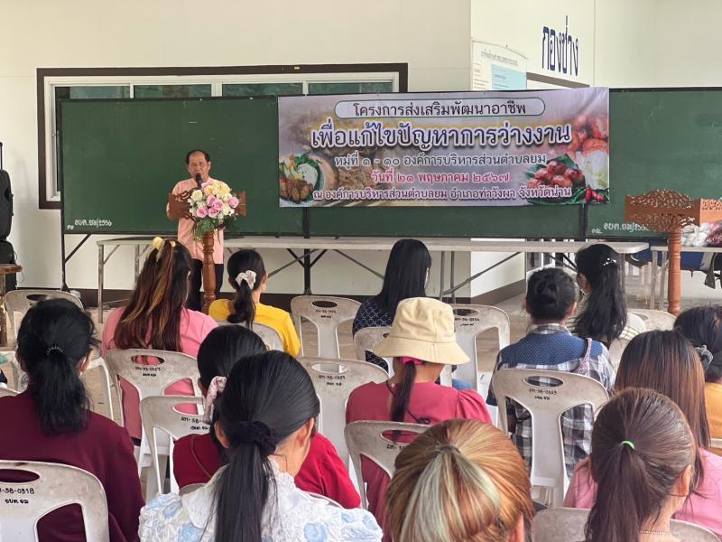 รายละเอียด : วันที่ 21 พ.ค.2567 สำนักปลัด องค์การบริหารส่วนตำบลยม จัดโครงการส่งเสริมพัฒนาอาชีพ เพื่อแก้ไขปัญหาความยากจน หมู่ที่ 1 - 10 (การทำไส้อั่วและการทำไส้กรอกข้าว) เพื่อส่งเสริมการพัฒนาอาชีพให้กับชุมชน ช่วยแก้ไขปัญหาการว่างงาน สร้างอาชีพ เพิ่มรายได้ และสร้างความเข้มแข็งให้กับชุมชน