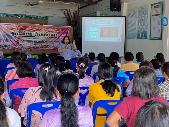รายละเอียด : วันที่ 14 มีนาคม 2568 คณะกรรมการหมู่บ้าน บ้านน้ำไคร้ หมู่ ที่ 9 ต.ยม ได้ดำเนินโครงการตามพระราชดำริด้านสาธารณสุข โครงการสืบสานพระราชปณิธาณสมเด็จย่า ต้านภัยมะเร็ง โดยมีกลุ่มเป้าหมายสตรีอายุ 30 – 70 ปี จำนวน 65 ราย วิทยากรจาก รพ.สต.บ้านพร้าว ได้ให้ความรู้เกี่ยวกับมะเร็งเต้านม และฝึกทักษะการตรวจเต้านมด้วยตนเอง ได้รับความร่วมมือจากกลุ่มเป้าหมายเป็นอย่างดี