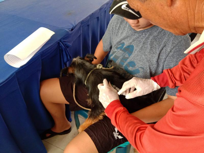 องค์การบริหารส่วนตำบลยม ดำเนินการฉีดวัคซีนป้องกันโรคพิษสุนัขบ้า ประจำปีงบประมาณ 2563 ภายใต้โครงการสัตว์ปลอดโรคคนปลอดภัยจากโรคพิษสุนัขบ้า